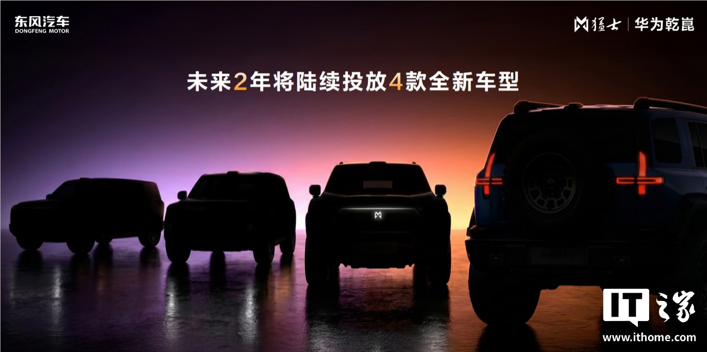 IT之家注意到,猛士汽车与华为乾崑的合作将在产品、渠道、生态等方面全面升级。在产品焕新方面,未来 2 年将陆续投放 4 款全新车型。同时,搭载顶级越野性能、融合华为乾崑顶尖智能技术的新车将于 4 月 24 日在北京车展首发亮相。